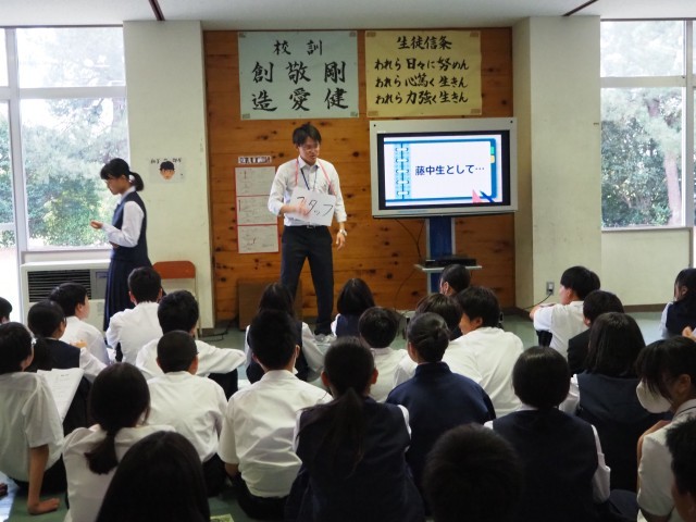 10月20日(月) 1学年 学年集会 公開日 2025/10/20 更新日 2025/10/20 1学年 6限に学年集会を行い、校外学習についての話をしました。実行委員が劇形式でルールや持ち物について説明していました。着々と準備が進んでいます! 1学年