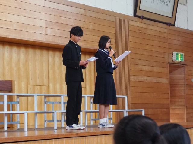 10月28日(火) 合唱コンクール① 公開日 2025/10/28 更新日 2025/10/28 news 今日は合唱コンクール当日でした。本番の様子をお伝えします。まずは開会式を行いました。実行委員長から全校生徒に向けた激励の言葉がありました。 +1