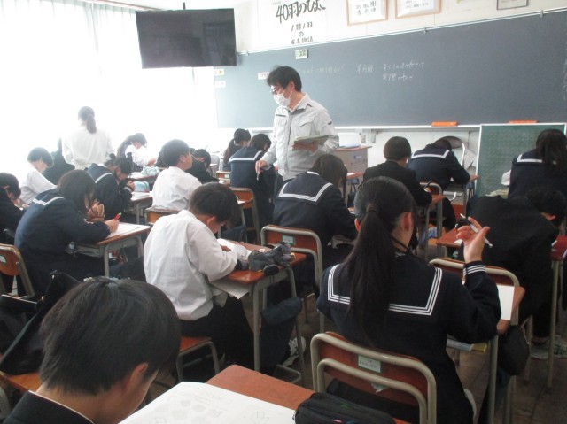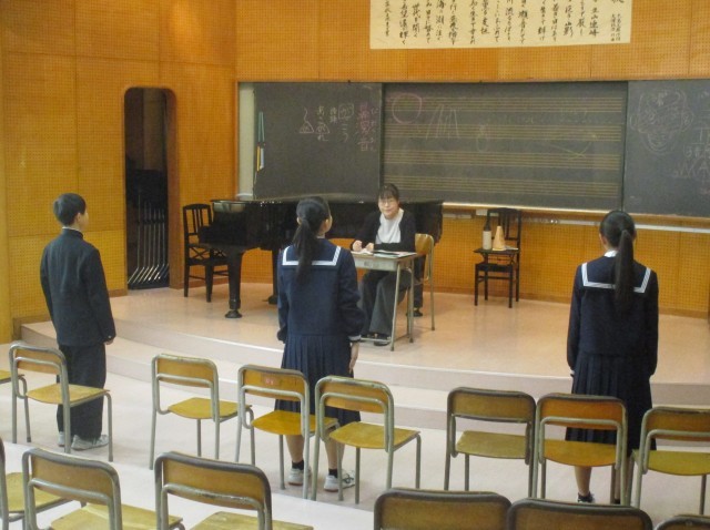 10月30日(木)1学年 授業風景 公開日 2025/10/31 更新日 2025/10/30 1学年 1学年の授業の様子を紹介します。【画像1】音楽:歌唱テスト【画像2】技術:等角図確認テストに取り組もう【画像3】家庭:野菜・いもをおいしく食べるには、どのように調理すればよいのか【画像4】数学:比例の表、式、グラフを関連づけて考えよう +1 1学年
