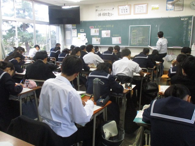 10月31日(金)1学年 授業風景 公開日 2025/10/31 更新日 2025/10/31 1学年 1学年の授業の様子を紹介します。【画像1】数学:反比例の式を求められるようになろう【画像2】国語:歴史的仮名遣い「いろは歌」【画像3】音楽:歌唱テスト【画像4】技術:第三角法による正投影図 +1 1学年