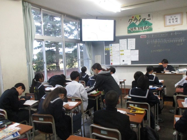 11月10日(月)1学年 授業風景 公開日 2025/11/11 更新日 2025/11/10 1学年 1学年の授業の様子を紹介します。【画像1】数学:反比例のグラフをかこう【画像2】国語:古典「竹取物語」【画像3・4】保健体育:バスケットボール【画像5】英語:代名詞の変化を覚えよう +2 1学年