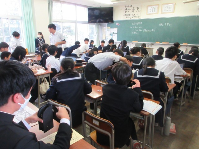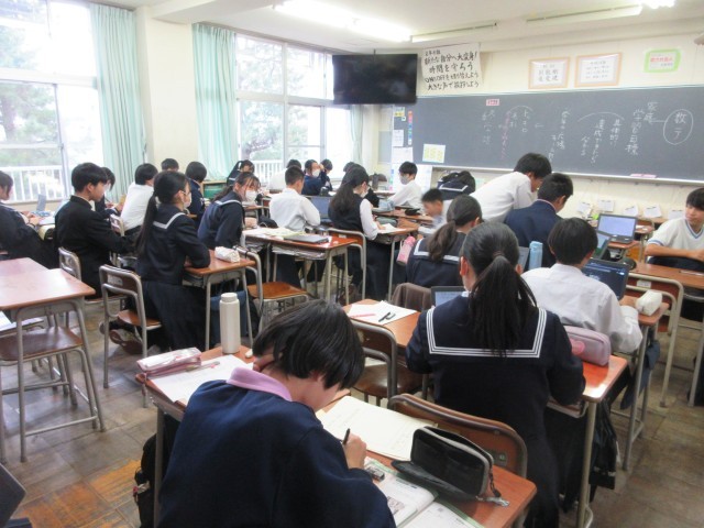今日の6限目は、期末考査に向けた家庭学習目標をたてました。