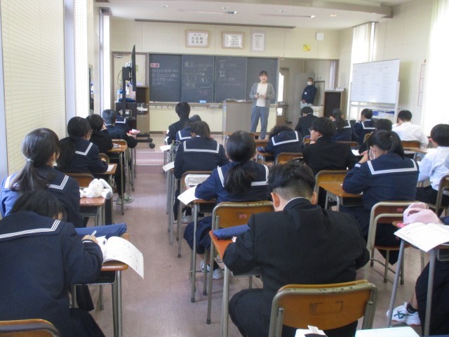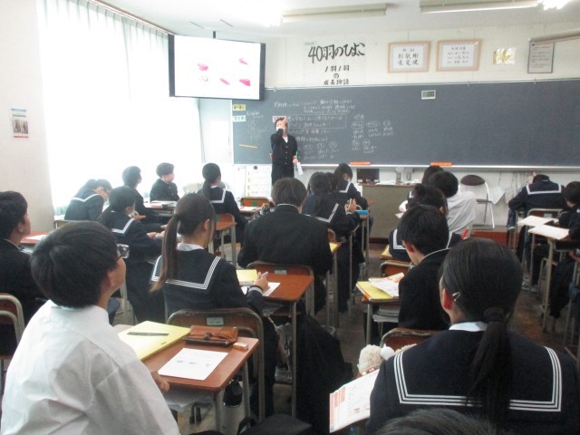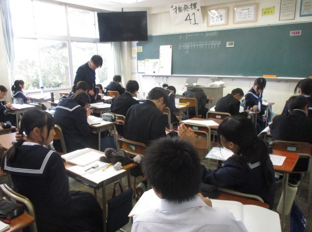 11月13日(木)1学年 授業風景 公開日 2025/11/13 更新日 2025/11/13 1学年 1学年の授業の様子を紹介します。【画像1】音楽:鑑賞「魔王」【画像2】数学:比例と反比例【画像3】家庭:肉を安全においしく食べるためには、どのように調理すればよい?【画像4】技術:第三角法による正投影図をかこう +1 1学年