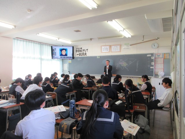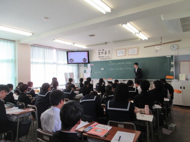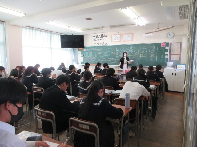 上から1組英語、2組理科、3組社会、4組音楽です。真剣に取り組んでいます。
