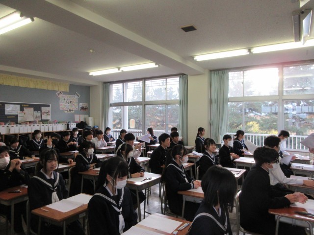 11月26日 2年生 期末考査2日目 公開日 2025/11/26 更新日 2025/11/26 2学年 期末考査2日目 1限目 技術家庭科のテストです。上から1組、2組、3組、4組です。みんな真剣に取り組んでいます。 +1 2学年