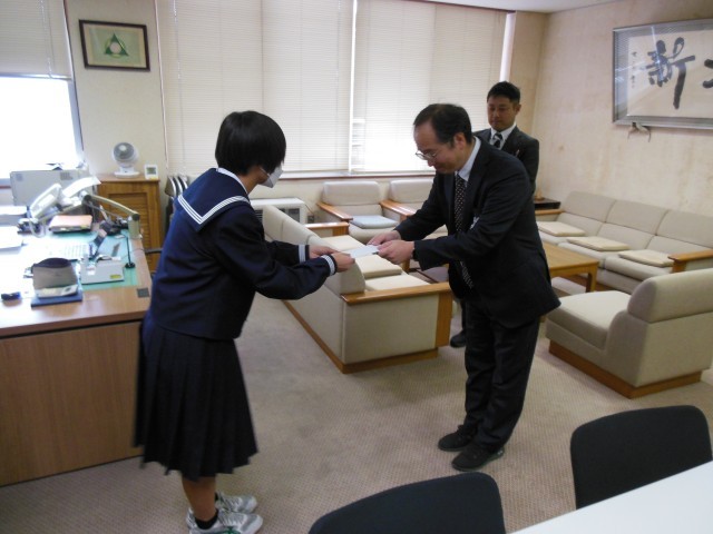 女子サッカーの全国大会に出場する生徒の激励会を行いました。
