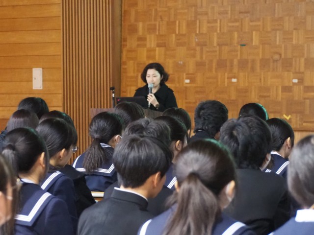 本校でも、産婦人科医の先生のお話やスライドを通して、思春期の心や体の変化、性に関わるトラブル、多様な性等について学ぶ機会となりました。代表の生徒は、「これからも正しい情報を自分で判断しながら、自分の心と体、そして周りの人を大切にしたい」とお礼の挨拶としていました。