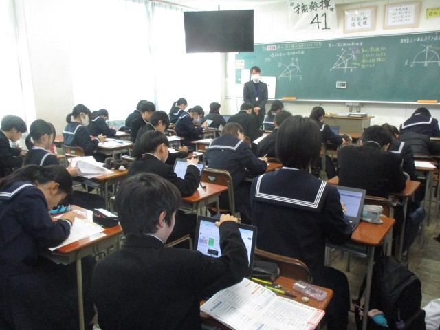 12月23日(火)1学年 授業風景 公開日 2025/12/23 更新日 2025/12/23 1学年 1学年の授業の様子を紹介します。【画像1】国語:書写「伝統芸能」【画像2】英語:ペアゲーム Q&A【画像3】保健体育:柔道【画像4】数学:角の二等分線の作図をマスターしよう +1 1学年