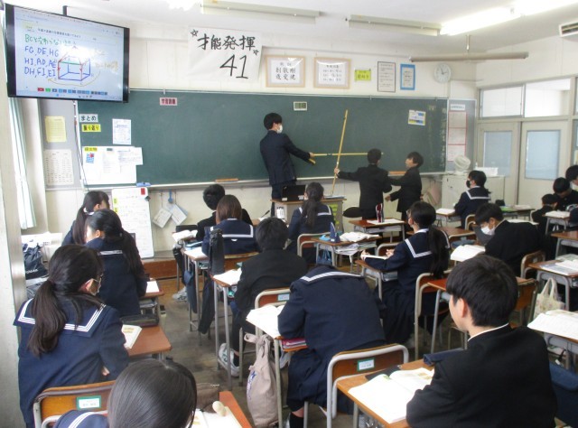 1月22日(木) 1学年 授業風景 公開日 2026/01/23 更新日 2026/01/22 1学年 1学年の授業の様子を紹介します。【画像1】数学:平面や直線の位置関係を調べてみよう【画像2】技術:木工製作【画像3】音楽:アルトリコーダー演奏【画像4】英語:Talk & Talk 26 +1 1学年
