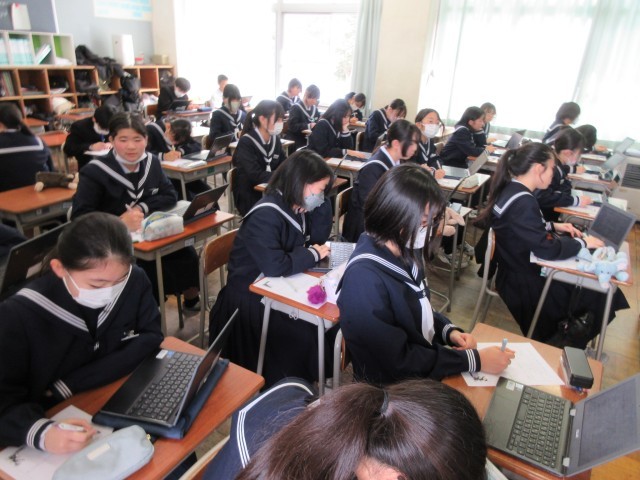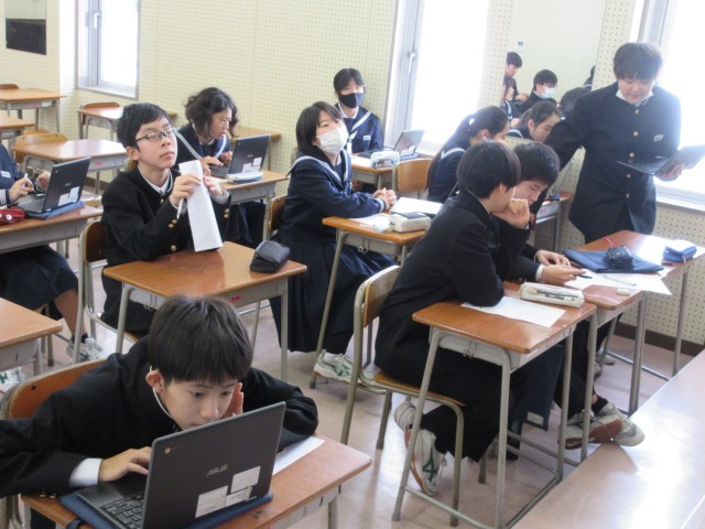 1年生は総合的な学習の時間に、2月に行われる「13歳の発見」に向けた準備を進めています。