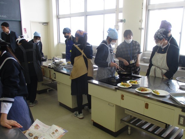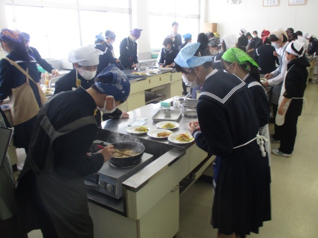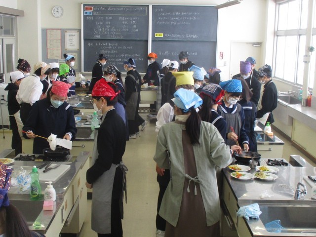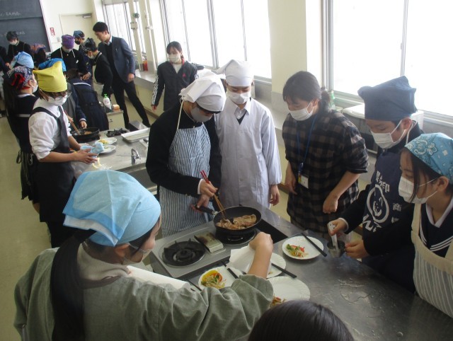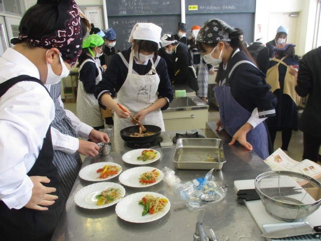 1月29日(木) 1学年 調理実習 公開日 2026/01/29 更新日 2026/01/29 1学年 1年生は、今週の家庭科の授業で調理実習に取り組んでいます。これまでの授業で身に付けた食品や調理の知識を活かして、「豚肉の生姜焼き」と「野菜炒め」を班で協力して調理しました。さて、出来具合はいかがでしたか?そして、美味しくいただけましたか? +2 1学年
