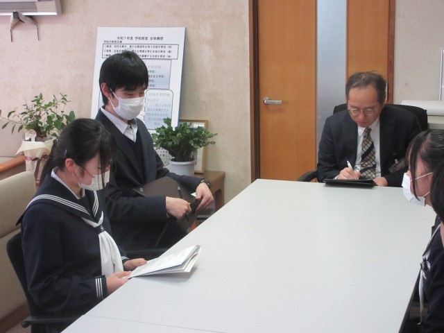 本日放課後、校長室にて、生徒会執行部と校長先生との話し合いが行われました。