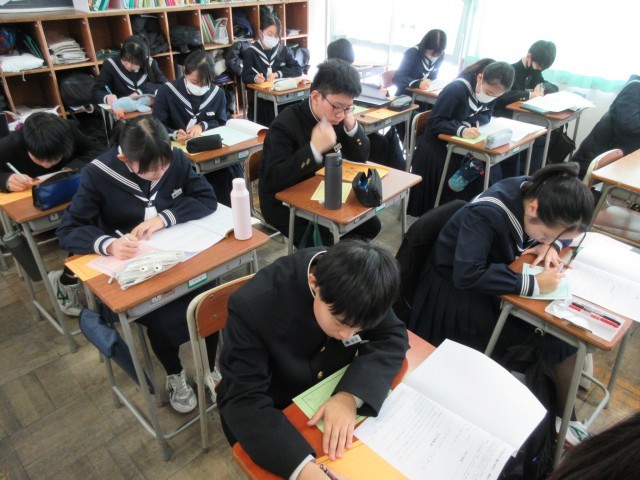 先週の「プロに学ぶ『13歳の発見』」では10の事業所の講師の方々から、働くことの楽しさ、大変さや、中学生の今やるべきこと等についてお話を伺いました。今日はお世話になった講師の皆さんへお礼状を書きました。感謝の気持ちが伝わるよう、時間をかけて丁寧な字で書いていました。