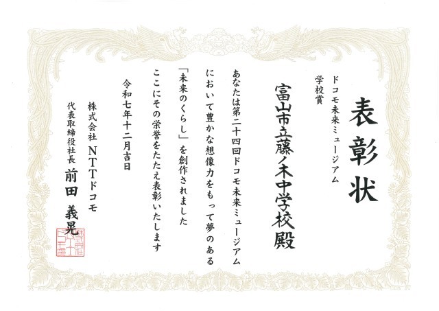 ドコモ未来ミュージアム 学校賞をいただきました。