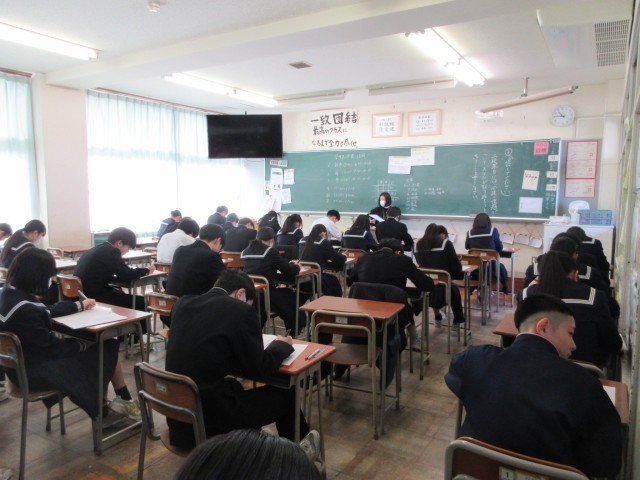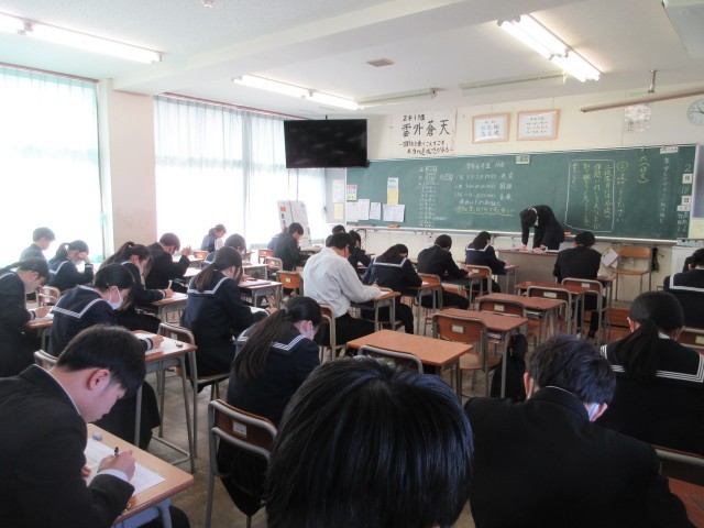 2月18日 2年生 学年末考査 1日目の様子 公開日 2026/02/19 更新日 2026/02/18 2学年 上から1組、2組、3組、4組 本日から学年末考査がスタートしました。 静まり返った校舎に、解答を書き込む音だけが響く1日目となりました。写真は真剣に問題に向き合う生徒たちの様子です。 明日、明後日と試験は続きます。努力が実を結ぶよう、教職員一同応援しています! 1年間の学習の成果を十分に発揮できるよう、ご家庭でも、温かな励ましをお願いいたします。 +1 2学年