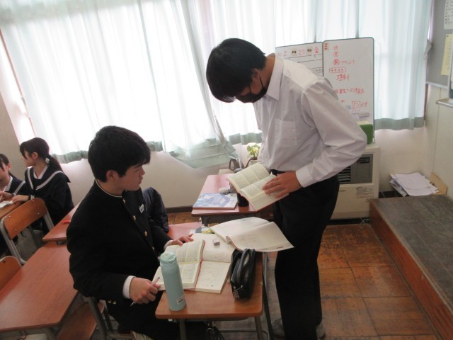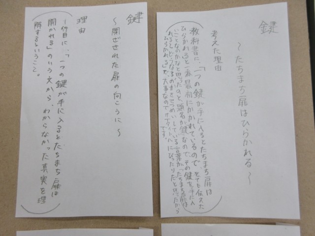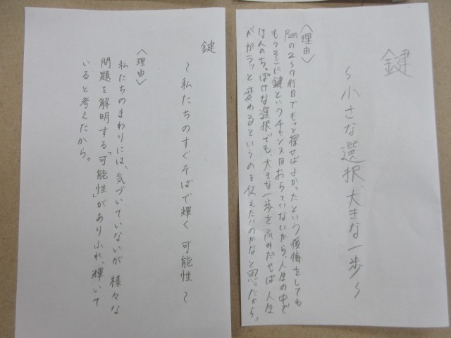 2月27日(金)2学年授業の様子(国語) 公開日 2026/02/27 更新日 2026/02/27 2学年 2学年授業の様子です。国語科の授業では、茨木のり子「鍵」という詩に「自分が解釈したことをもとに副題をつけよう」という課題に取り組みました。考えた副題から、それぞれが詩からどのようなことを感じ取ったか、どう解釈したかが分かるため、生徒たちは興味深く互いの作品を鑑賞しました。 2学年