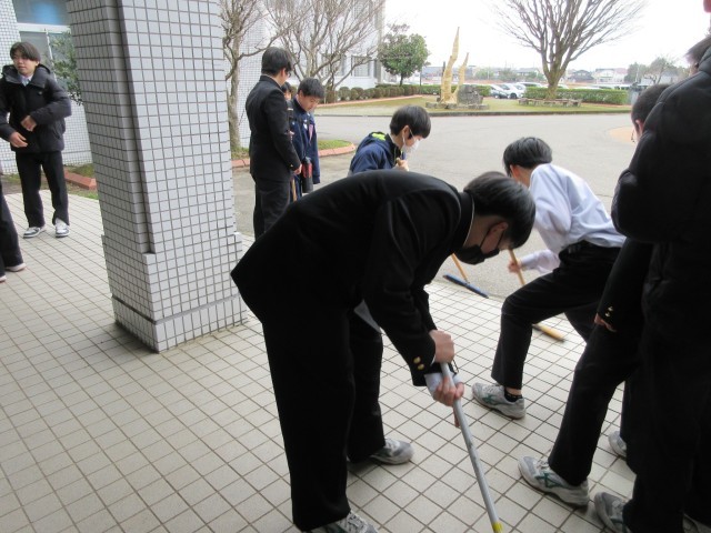 1年生の美化委員を中心とするボランティアの生徒が、3年生の玄関の掃除を行いました。