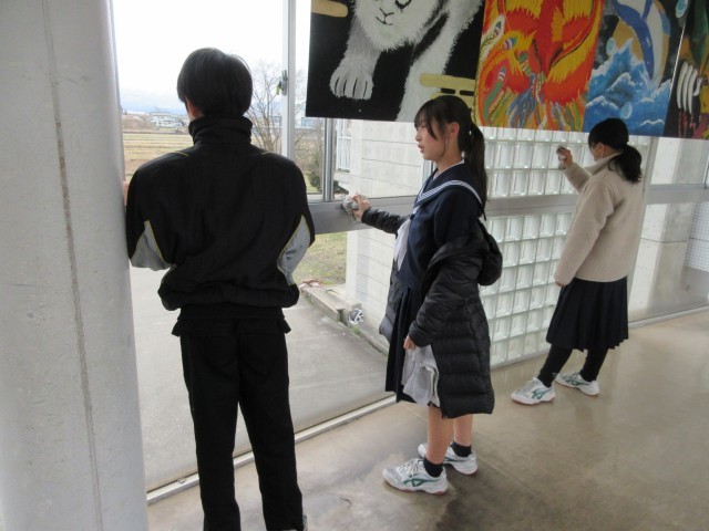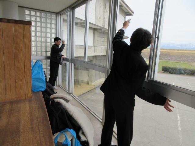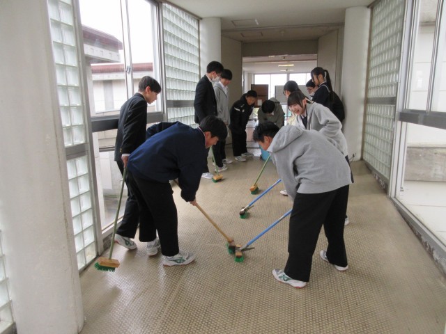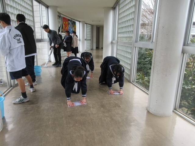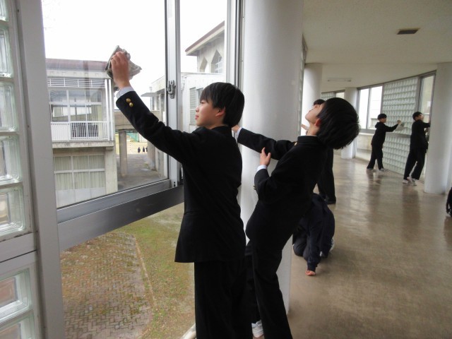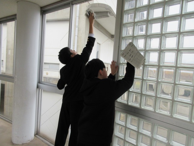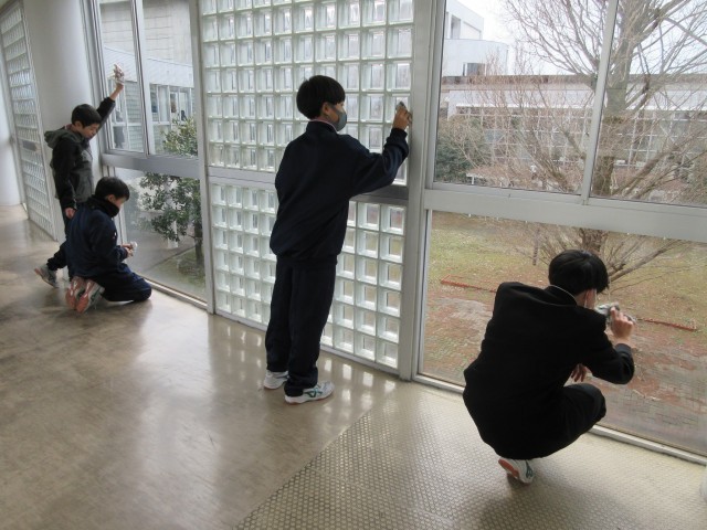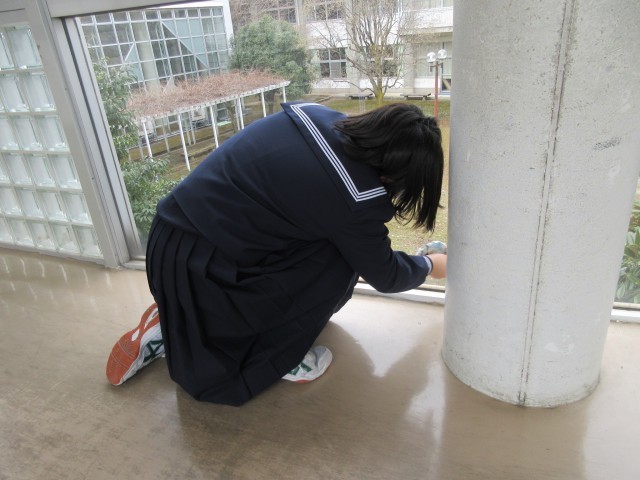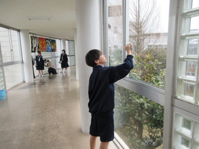 この場所は卒業式に3年生が通る廊下なので、窓を拭いたり床を磨いたりとピカピカにしました。