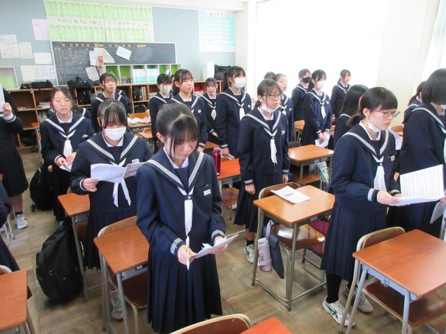 皆給食の片付け後素早く集合・整列し、美しい響きを意識しながら歌っていました。