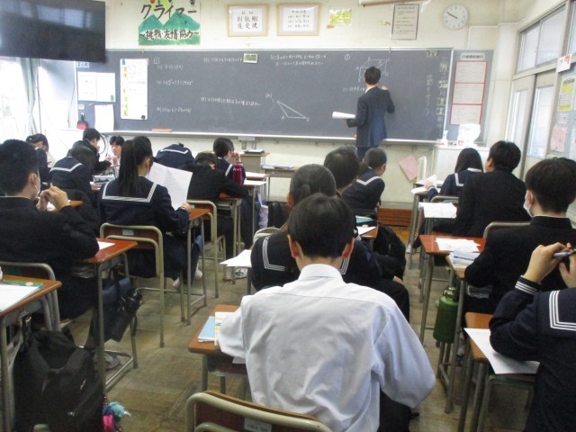 3月16日(月) 1学年 授業風景 公開日 2026/03/16 更新日 2026/03/16 1学年 1学年の授業の様子を紹介します。【画像1】保健体育:マット運動【画像2】数学:入試問題に挑戦してみよう【画像3】社会:戦乱から全国統一へ【画像4・5】英語:スピーキングテスト +2 1学年