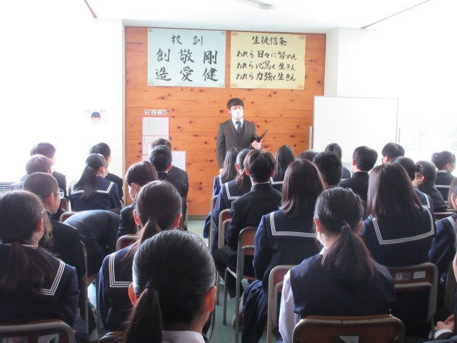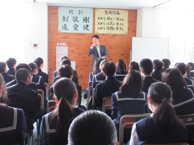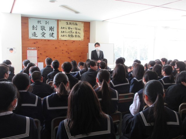 修了式の後は、コモンスペースで1学年最後の集会を行いました。