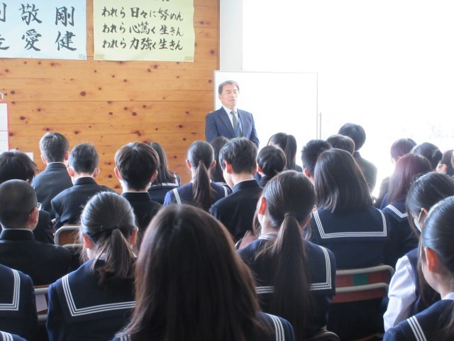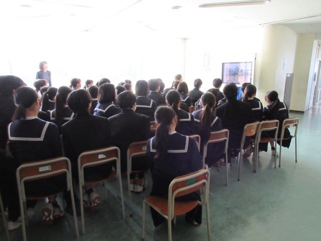 学年担当から一人ずつ話をし、学年主任からプレゼントとしてスライドショーがありました。
