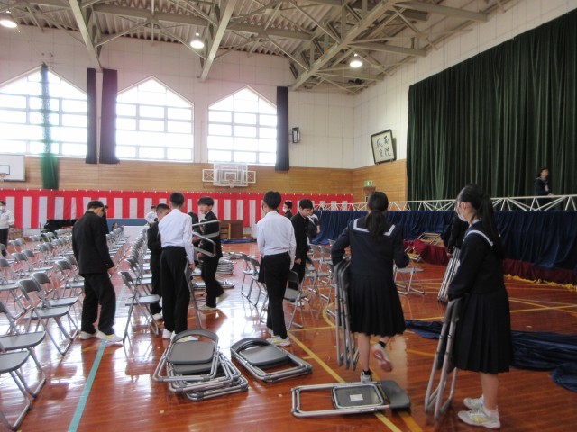本日、有志の生徒ボランティアによる入学式準備を行いました。