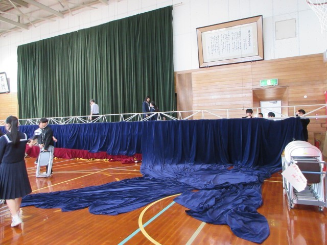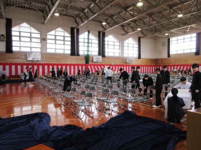 明日の式典に向けて、新入生を気持ちよく迎えられるよう、会場設営や清掃に一生懸命取り組んでくれました。