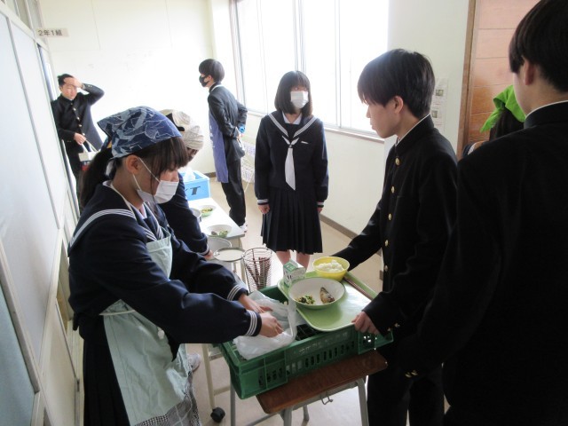 新しいメンバーでの給食でしたが、班員で協力してスムーズに取り組みました。