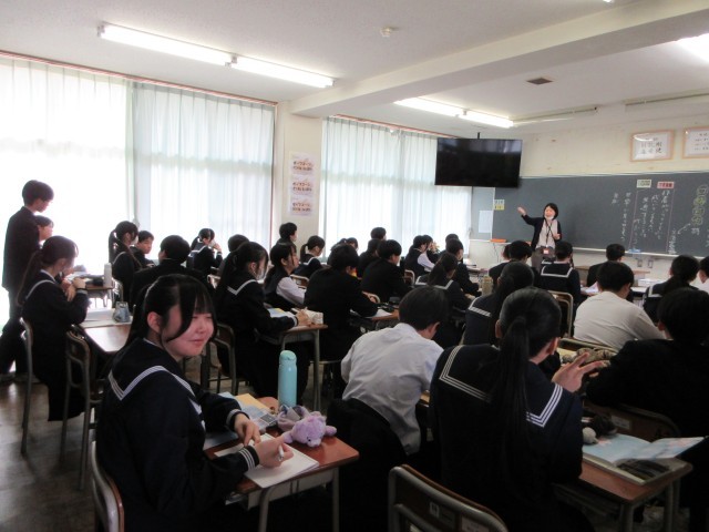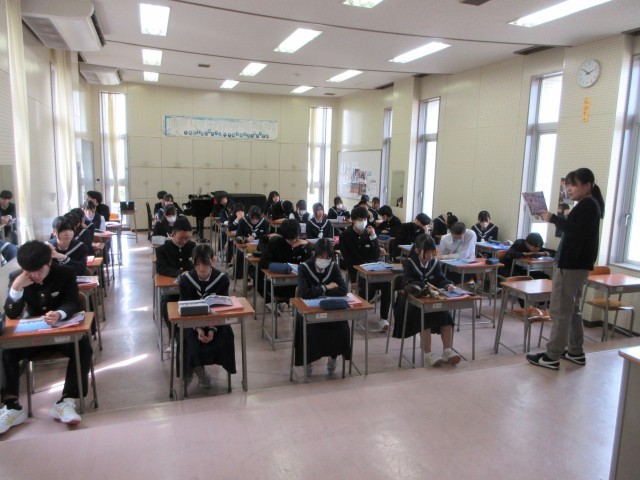 4月17日 3年生 授業の様子 公開日 2026/04/18 更新日 2026/04/17 3学年 上から 1組 英語、2組 理科、3組 国語、4組 音楽 です。最高学年になり、どの生徒も、気合の入った表情で授業に取り組んでいます。 +1 3学年