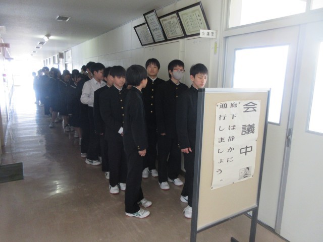 4月17日(金)2学年 聴力検査 公開日 2026/04/18 更新日 2026/04/17 2学年 年度初めには様々な健康診断があります。本日は聴力検査がありました。待機の間も整列し、静かに過ごせました。 2学年