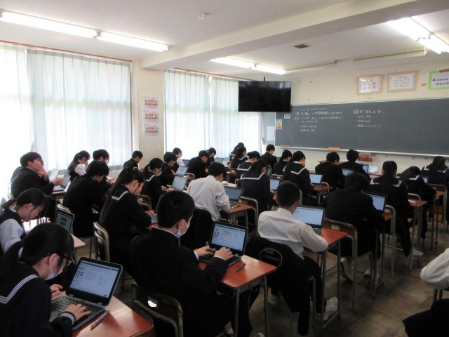 4月21日(火) 3年生 全国学力学習状況調査 公開日 2026/04/21 更新日 2026/04/21 3学年 全国学力学習状況調査の「英語(読む・聞く・書く)」を行いました。一人一人がクロムブックを使って問題に取り組みました。静かに、真剣に取り組んでいました。 +1 3学年