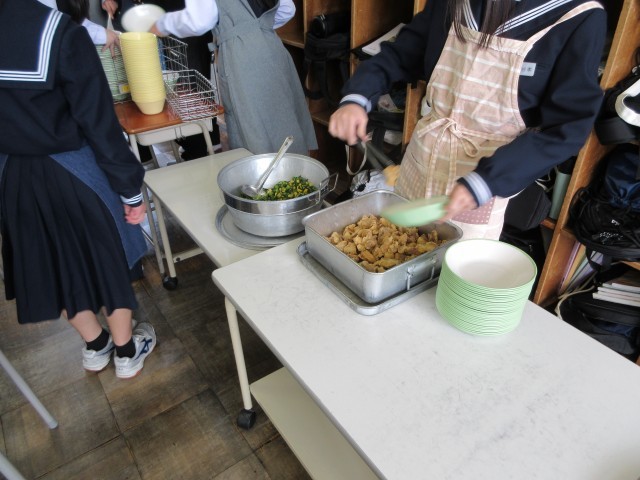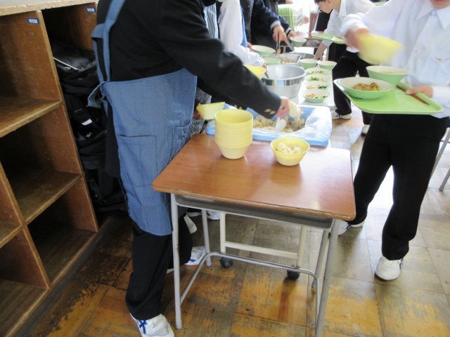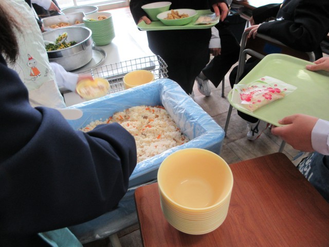 4月22日(水)1、3、4組 給食準備 公開日 2026/04/22 更新日 2026/04/22 1学年 今日はお祝い給食です。 慣れてきたのか、準備のスピードが少しずつ上がっています。 一生懸命に役割を果たしてくれる姿がとてもさわやかなので、ずっと続いてほしいと思います。 +2 1学年