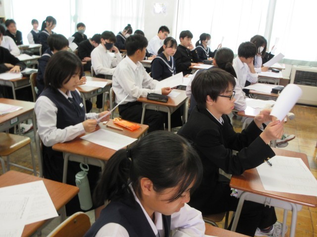 4月24日(金) 2学年 「社会に学ぶ『14歳の挑戦』」に向けて 公開日 2026/04/24 更新日 2026/04/24 2学年 5限の総合で、6/29(月)から7/3(金)まで行われる「14歳の挑戦」に向けたオリエンテーションを行いました。大まかな流れや協力していただける事業所などについての話を聞き、今後の見通しを立てました。業種希望調査は4/30(木)が提出期限となっています。保護者の皆様はご協力をお願いいたします。 2学年