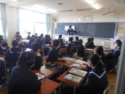 2年生になって初めての学活の様子です。 新しいクラス担任の話をみんな真剣に聞いています。(2−1)