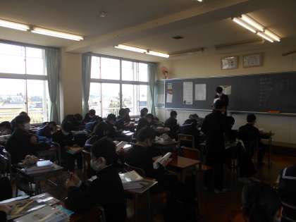 2年生になって初めての学活の様子です。 みんなで配布物を確認しています。(2−2)