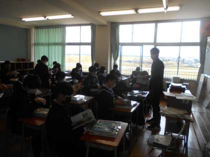 2年生になって初めての学活の様子です。 みんなで配布物の確認をしています。(2−5)