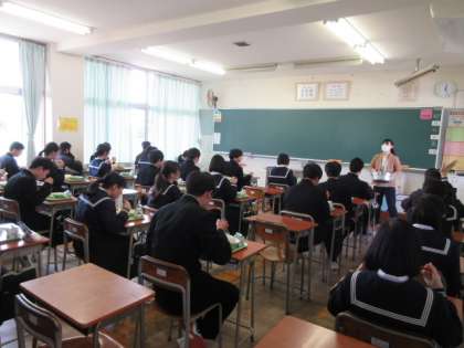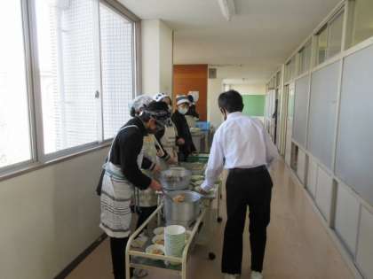 今年度も密にならないように配膳し、クラス全員が前を向き、黙食しています。