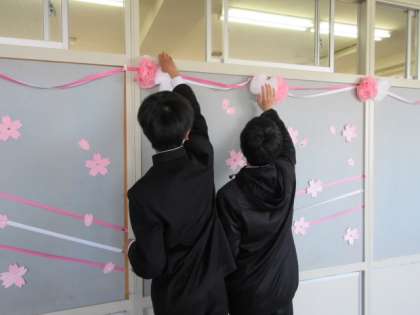 5時間目に明日の入学式に向けての準備を行いました。3年生は体育館の椅子を丁寧に並べました。2年生は教室の飾り付けや清掃を行いました。後輩が来ることを楽しみにしながら活動しました。藤ノ木中学校新入生の皆さん、明日の入学を心待ちにしています。