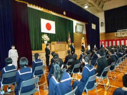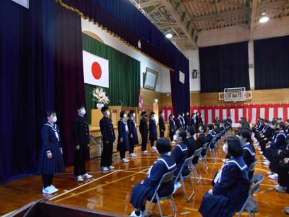 1学年を担当する教員が発表された後、3年生による校歌披露が行われました。