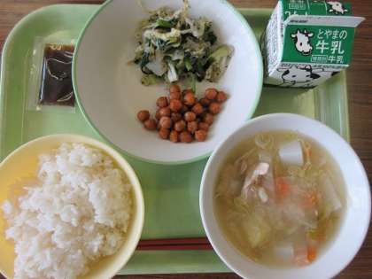 4月13日(水) 今日の給食 公開日 2022/04/13 更新日 2022/04/13 news 今日の給食のメニューは以下のとおりです。 ○ごはん ○牛乳 ○ひよこ豆のフライビーンズ ○ゆかり和え ○豚汁 ○のり佃煮