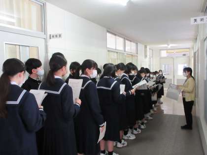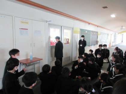 4月14日(木)1年 校舎めぐり 公開日 2022/04/14 更新日 2022/04/14 news 1年生は校舎内を歩き、どんな教室があるか確認しました。 明日から授業が始まりますが、これで移動教室もバッチリですね。 職員室前では、職員室への入り方を代表の生徒が練習していました。