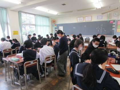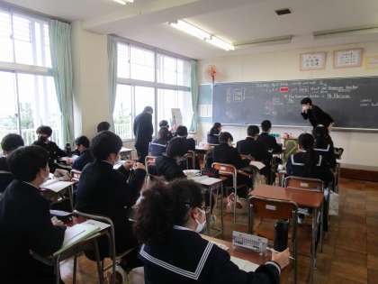 2、3年生は授業が始まっています。初めて会う教科担任の先生と一緒に新しい学年の学習内容の確認などをしていました。