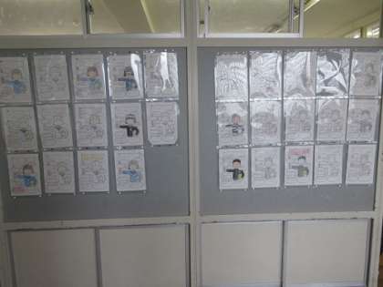 1年生の廊下には「自己紹介カード」が掲示してあります。