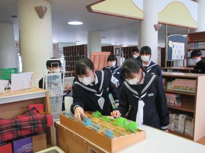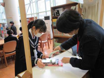 4月15日(金)図書館オリエンテーション 公開日 2022/04/15 更新日 2022/04/15 news 1年生は図書館で司書の先生から図書館の使い方について説明を受けました。実際に本を選び、借りる体験も行いました。藤ノ木中学校は朝読書の時間があります。どんどん本を読んでくださいね。