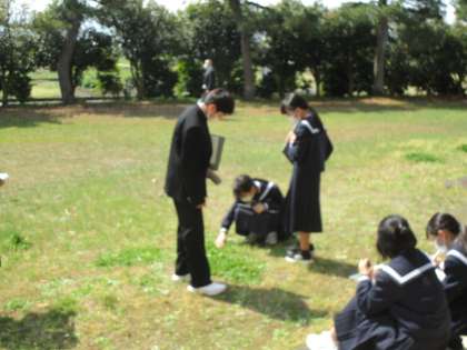 1年生は暖かな日差しの中、校庭に出て植物の観察をしたり、楽しそうに数学の問題に取り組んだりしています。