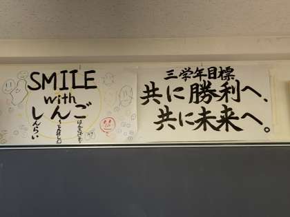 3学年の学年目標及び各クラスの学級目標の掲示物が完成したものを紹介します。 3ー1 3ー2