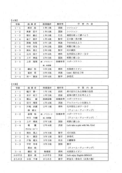 なお、本ホームページ右側「配布文書」「その他カテゴリー」に「授業参観・学習懇談会 会場一覧表」を掲載していますので、そちらもご覧ください。