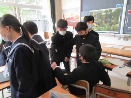 4月23日(土)1年生 2限授業参観の様子(1−1,1−2) 公開日 2022/04/23 更新日 2022/04/23 1学年 【写真上】音楽「校歌をはきはきと歌おう」 【写真下】美術「作品を鑑賞しよう『夢』」