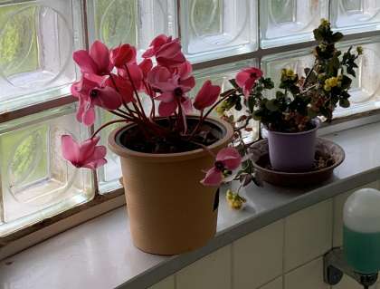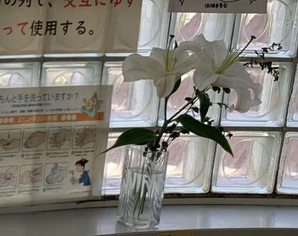 校舎のさまざまな場所にきれいな花が飾られて心を和ませてくれています。